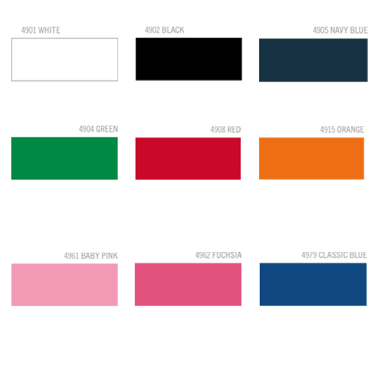 Vinil têxtil Poli-Flex® Turbo em cores básicas, confeccionado em poliuretano ecológico com adesivo termicamente activado e pelicula de transporte embutida.